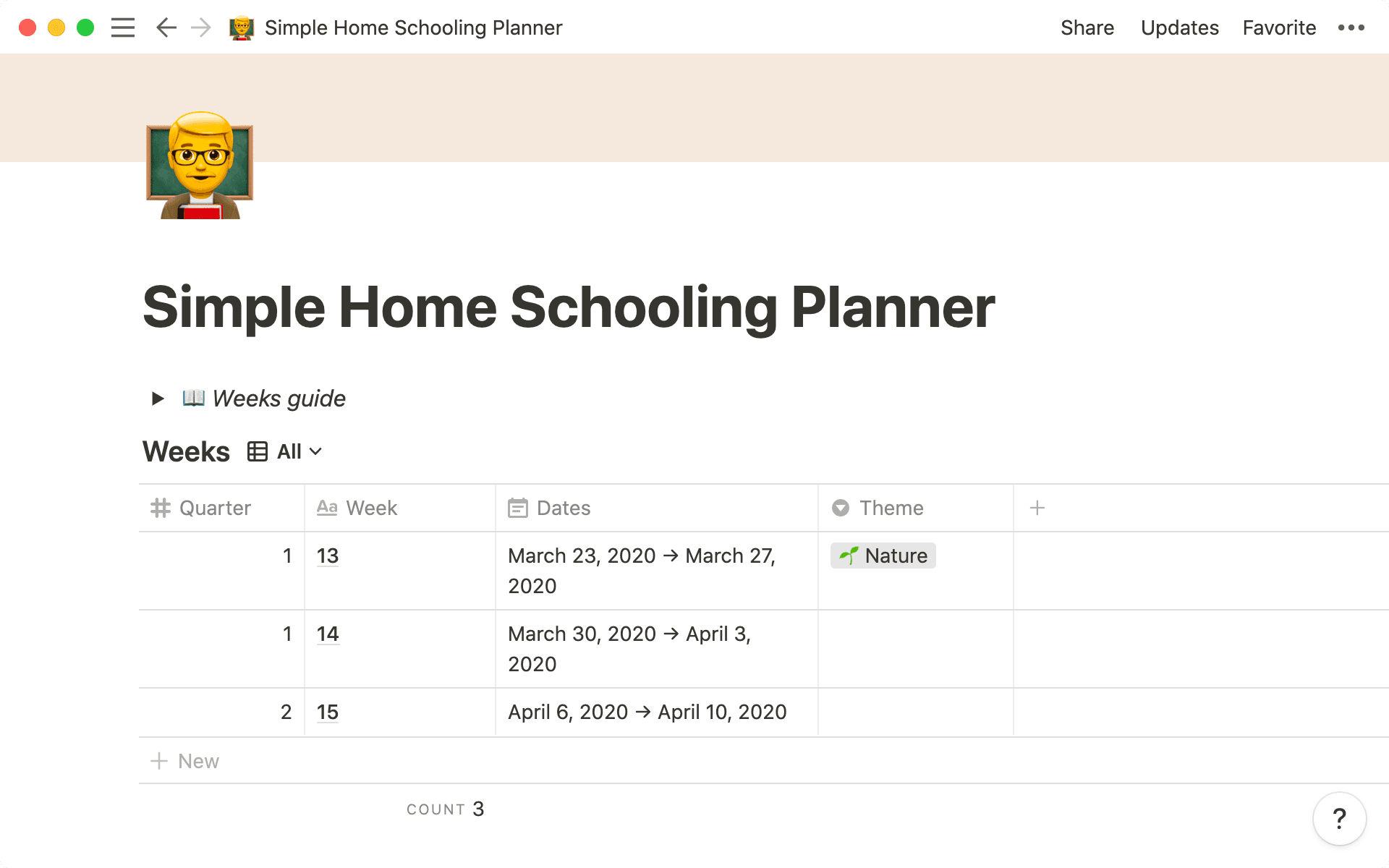 Pro tip: Create dynamic associations between lessons, units and standards — linking databases to one another through relations gives you a big picture understanding of your yearly plan. With this setup, any adjustments you make to the “lessons” database will be reflected in your unit plans, and your standards map, so that everything is always in sync.